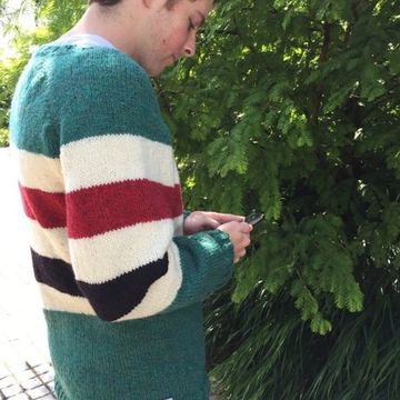 Oversized Striped Accents, Crew Neck, Long Sleeve